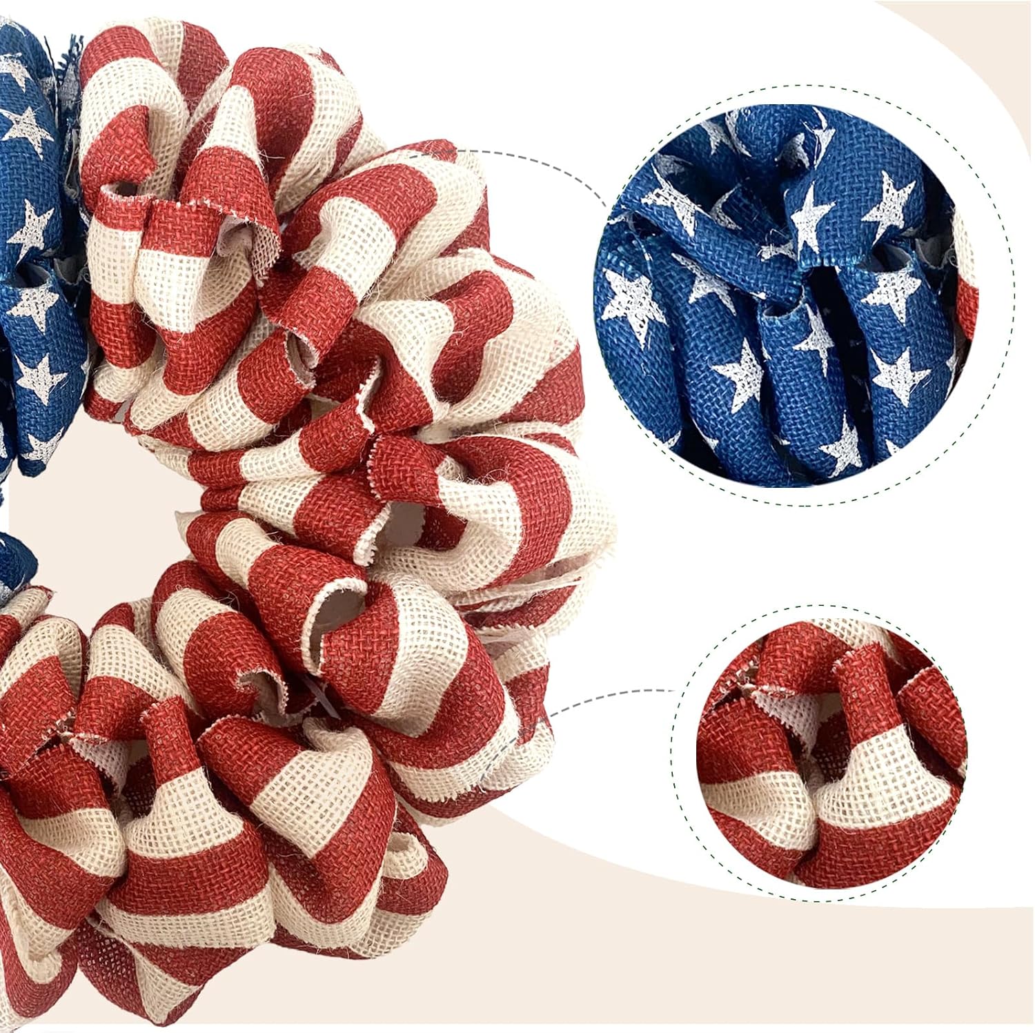 13 Inch Patriotic Burlap Wreath, 4th of July Summer Burlap Stripe and Stars Printed Wreath