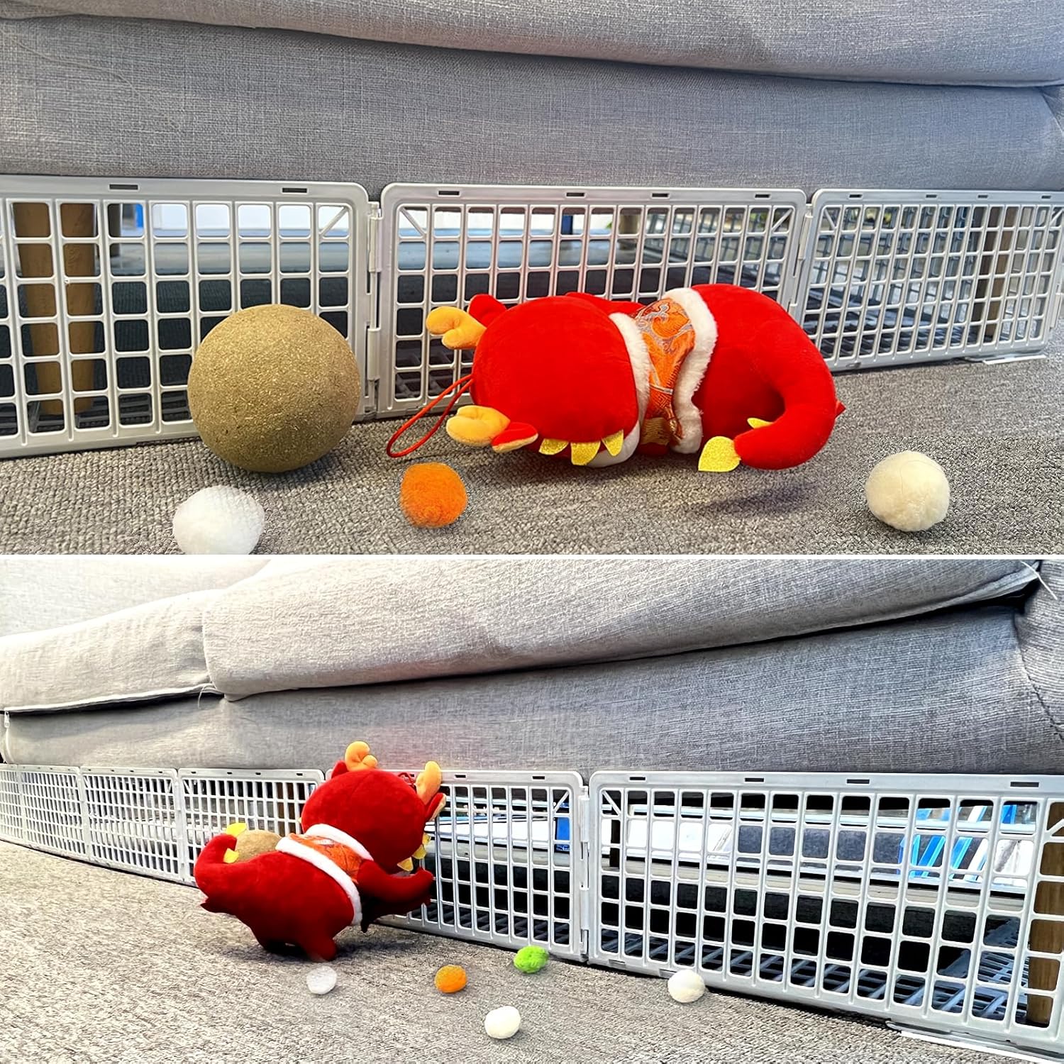- 【Assembling Under Couch Blocker】17 pcs Plastic baffle that can be assembled and disassembled, installed under the sofa, block your family pets from burrowing under the sofa, preventing toys and other small things at home from rolling under the sofa.