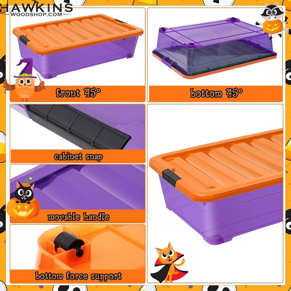 Peek-a-boo! Our under-bed storage containers come in fun orange and purple caps, letting you spy what's inside through their see-through plastic bodies. At a whopping 52.8 quarts (measuring about 29.21 x 20.67 x 7.87 inches), these spacious hideaways are perfect for tucking away clothes, books, toys, or holiday goodies. Say goodbye to clutter and hello to organized bliss as these durable plastic bins slide neatly under your bed, transforming wasted space into a storage paradise!