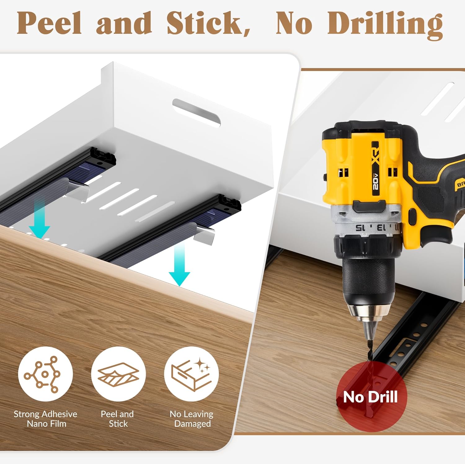 2 Pack Pull Out Organizer Drawers for Cabinets Fixed with Nano Film