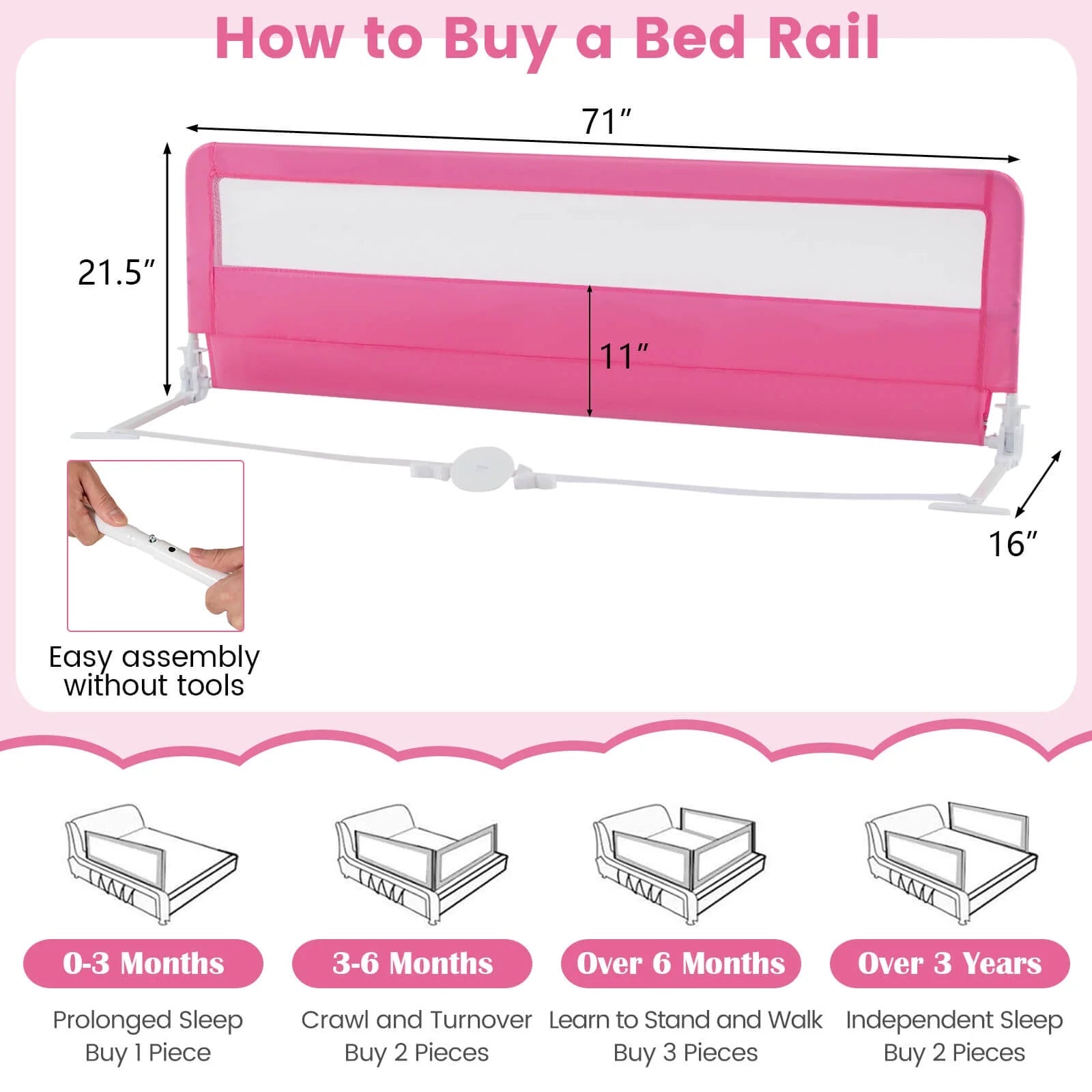 Babyjoy 71" Long Bed Rail for Toddlers with Removable Cover Breathable Mesh & Crossbar Pink