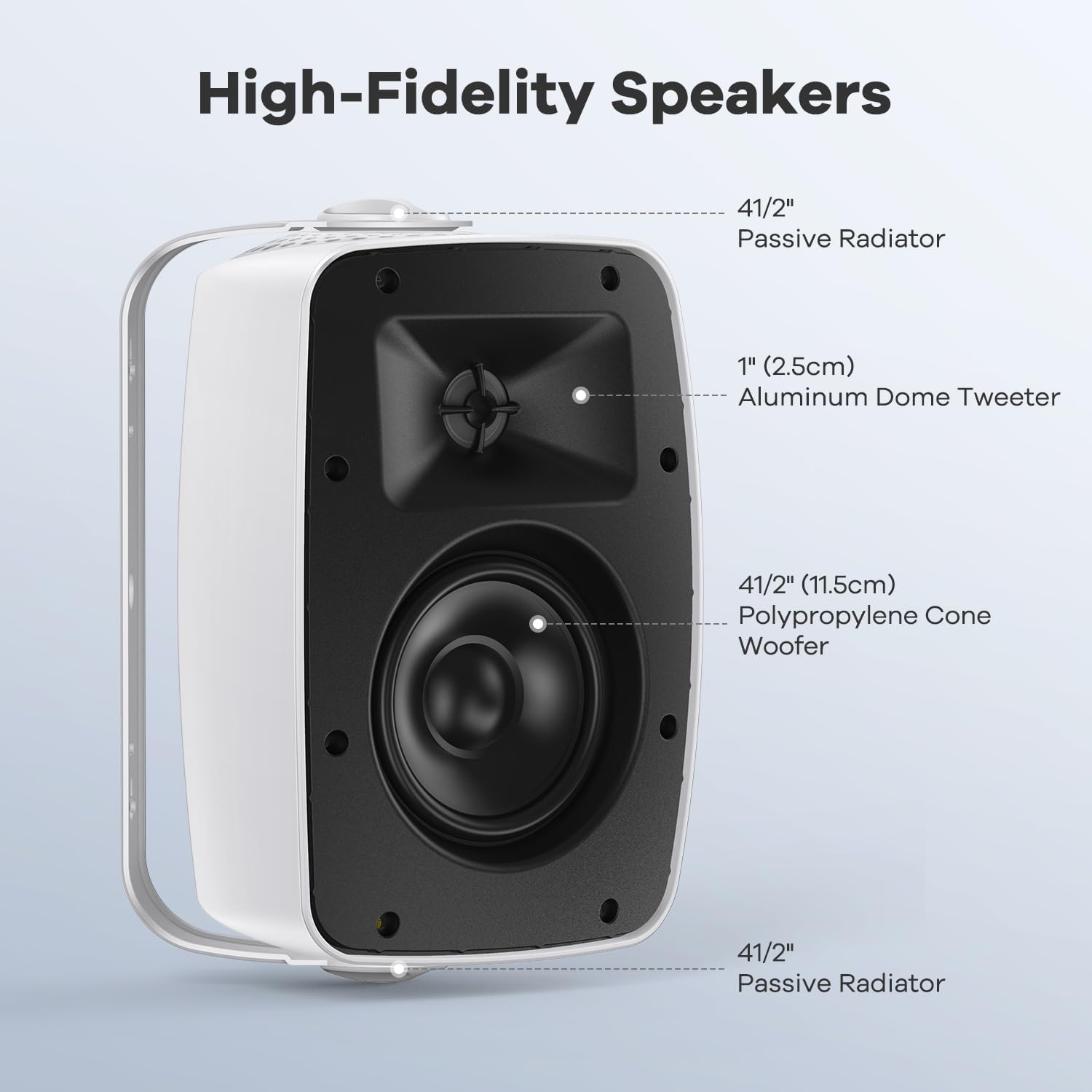 Black - 4.5'' Outdoor Speakers Deep Bass, Dual 4.5'' Passive Radiators, Broad Sound Coverage