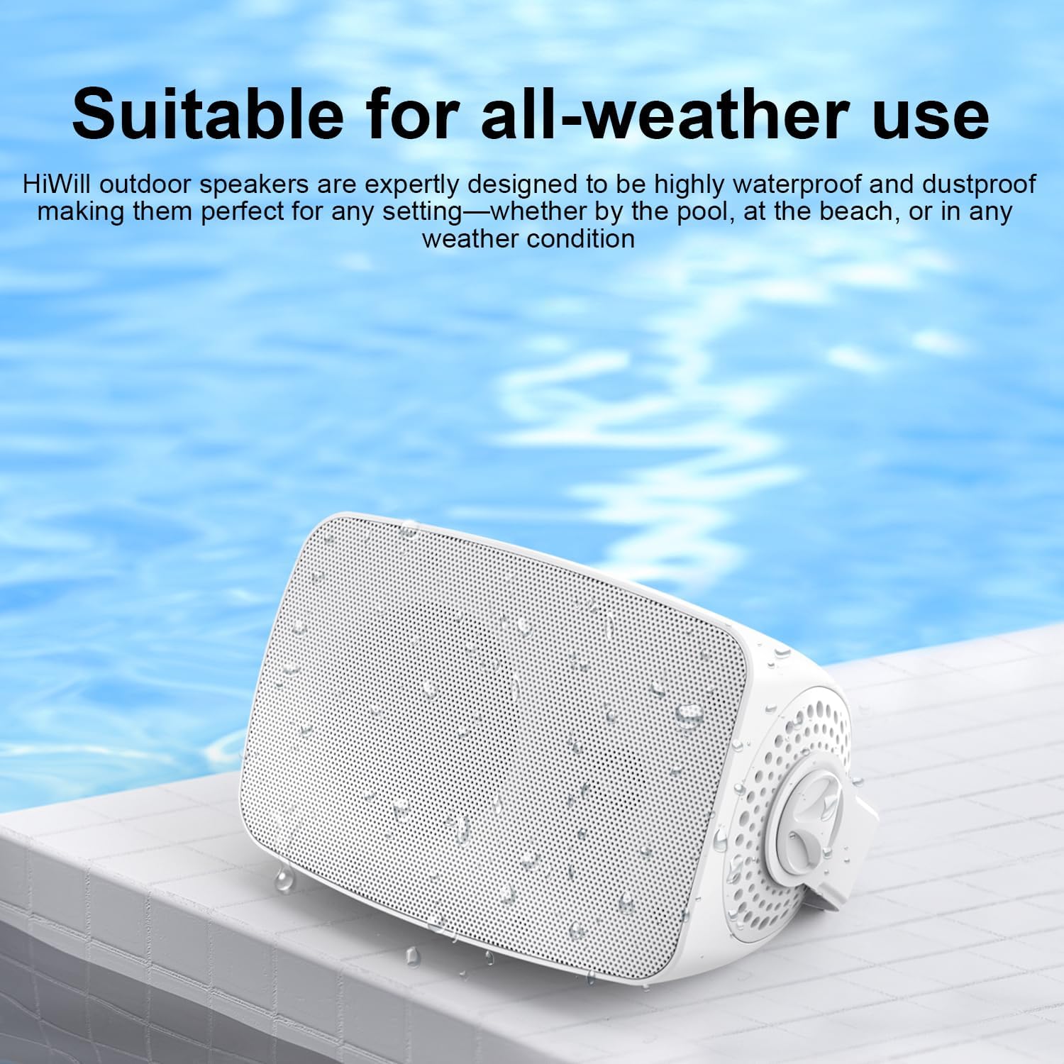 - Get ready to rock your outdoor space with booming bass and crystal-clear highs! Featuring a 4.5" polypropylene woofer, dual passive radiators, and an aluminum dome tweeter, these speakers pump out deep, vibrant sound that fills your yard. Made tough to brave water, dust, and rust, they’re perfect for patios, pools, or garden parties rain or shine. The smart tilted cabinet spreads sound wide and bright, turning any outdoor spot into a concert zone. Plus, with flexible hookups, these speakers fit effortlessly into any system, indoors or out!