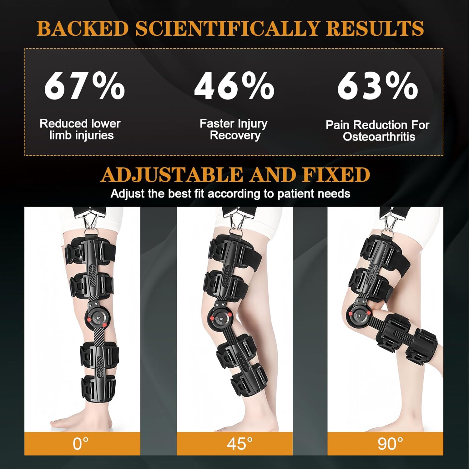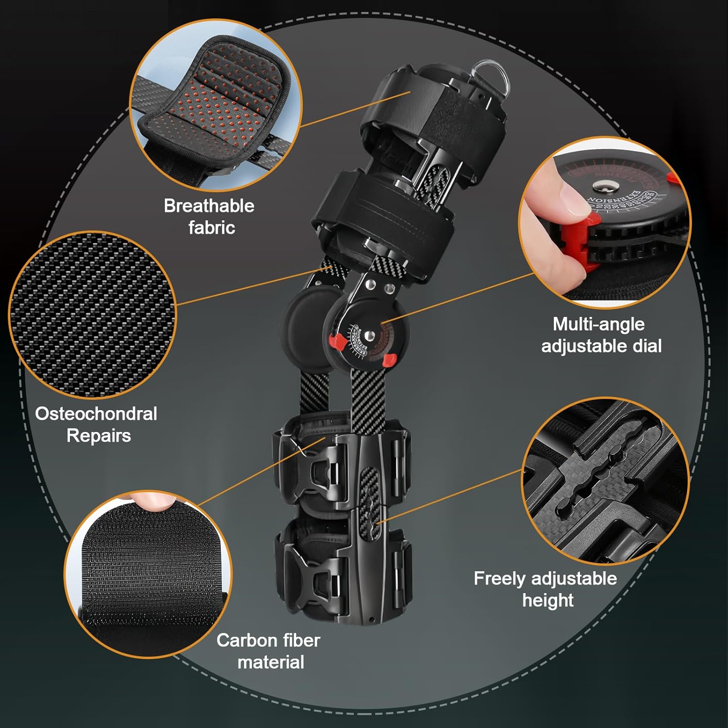 - 【Stabilization & Effective】Carbon fiber Knee Brace features only 1.3pound.Post Op Knee Brace can reducing the risk of re-injury. Hinged Immobilizer is fit for ACL, MCL, PCL, LCL repairs/injuries, post-operative recovery, treatment of arthritis, meniscus tear, tendonitis, artificial knee instability, condylar fractures, patella tendon repairs, osteochondral tepairs, tibial plateau fractures, sprains/strains of the knee, fixation after plaster removal, ligament, tendon strains, HTOs ETC.