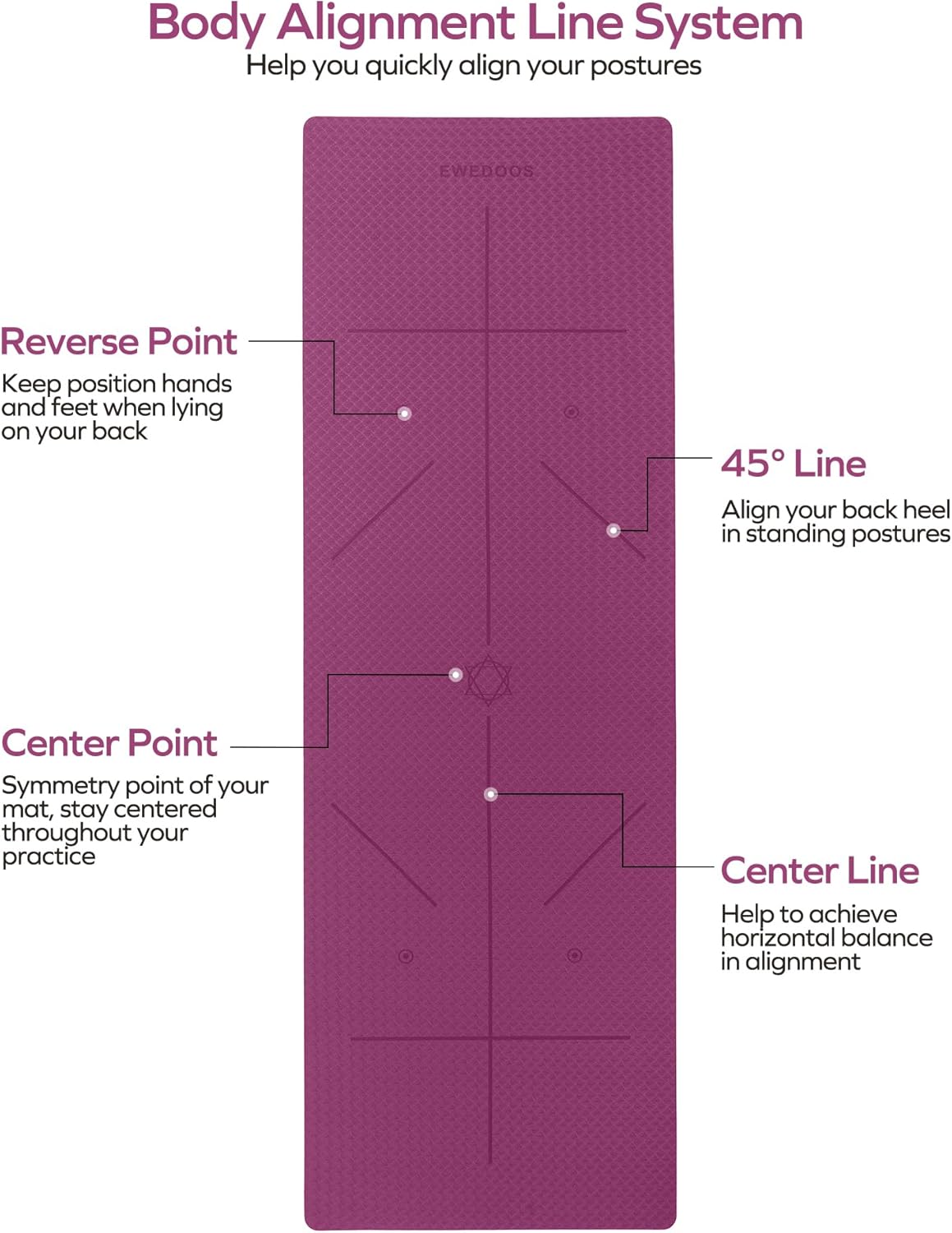 Ewedoos Eco Friendly Yoga Mat with Alignment Marks TPE Yoga Mat Non Slip Hot Yoga Mat Thick 1/4''