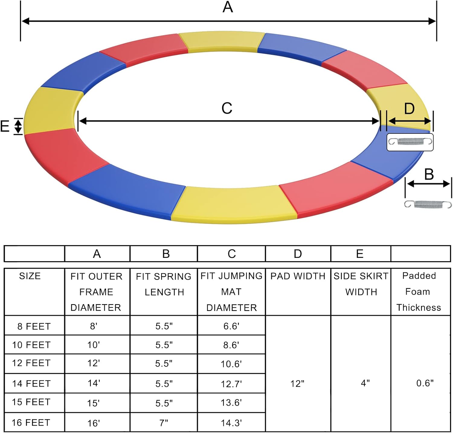 Giantex Trampoline Pad, 12ft-14ft Trampoline Replacement Safety Pad, No Holes for Pole