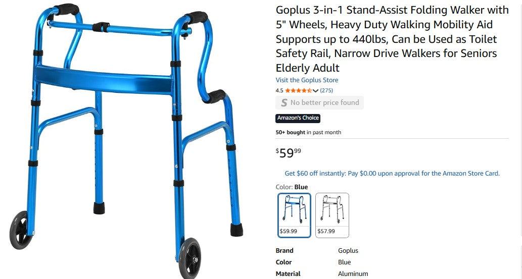 Goplus 3-in-1 Stand-Assist Folding Walker with 5" Wheels