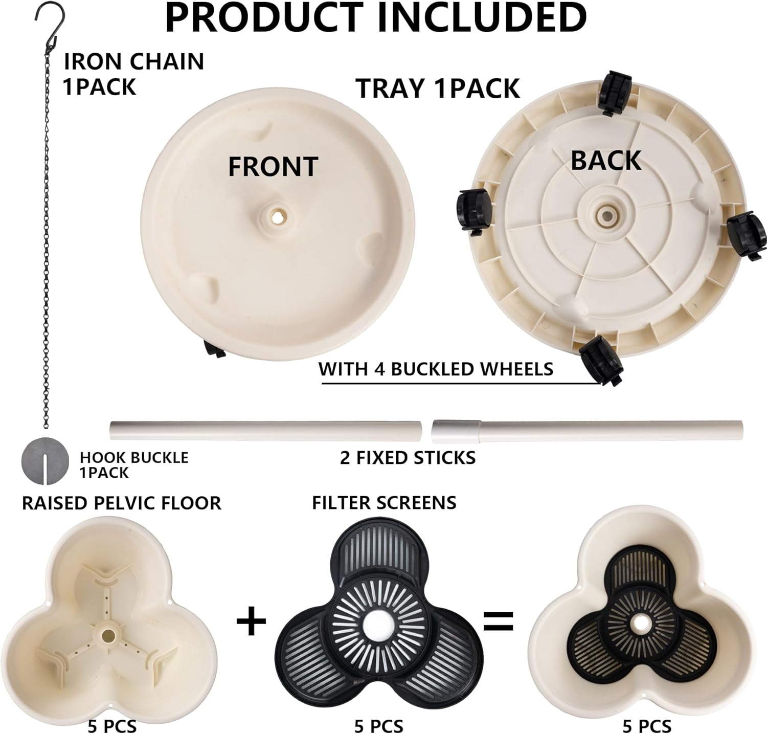 This stackable gardening tower features pods measuring 13 x 5.1 inches and a tray height of 3.54 inches, with a total height of 2.52 feet and a 37.5-inch iron chain for hanging. You can easily stack 2, 3, or 4 tiers or hang it to save space. Its vertical design maximizes your growing area, perfect for flowers, vegetables, and herbs. Made from durable polypropylene, it resists cracking and fading. Wheels add portability, letting you move your garden wherever you choose. Grow more in less space with this versatile, sturdy planter tower.