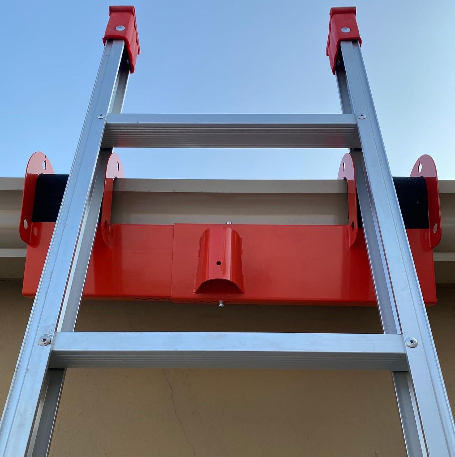 This heavy-duty steel ladder stabilizer features an adjustable design that conforms to your ladder's width, providing a custom fit every time. It acts as a protective barrier for your gutters, preventing costly damage from ladder contact during maintenance work. The anti-slip ribbed rubber surface grips securely against your ladder, dramatically reducing dangerous sideways movement and giving you the confidence to work at heights. Whether you're cleaning gutters, painting, or performing routine maintenance, this stabilizer keeps both your equipment and your gutters safe from harm while you focus on the job at hand.