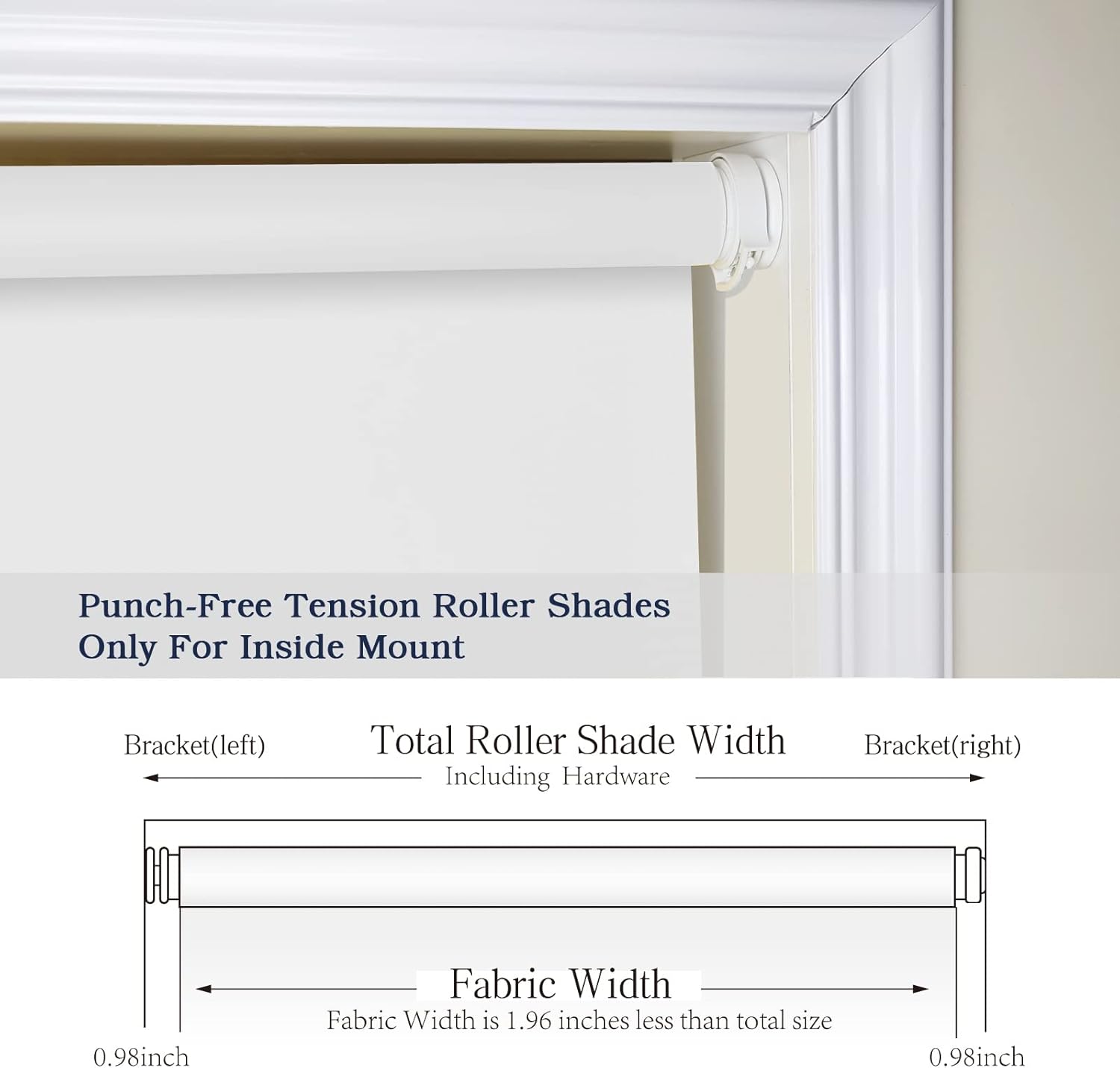 No Drill Inside Mount Blackout Roller Shades Custom Tension Window Blind (28 x 72)