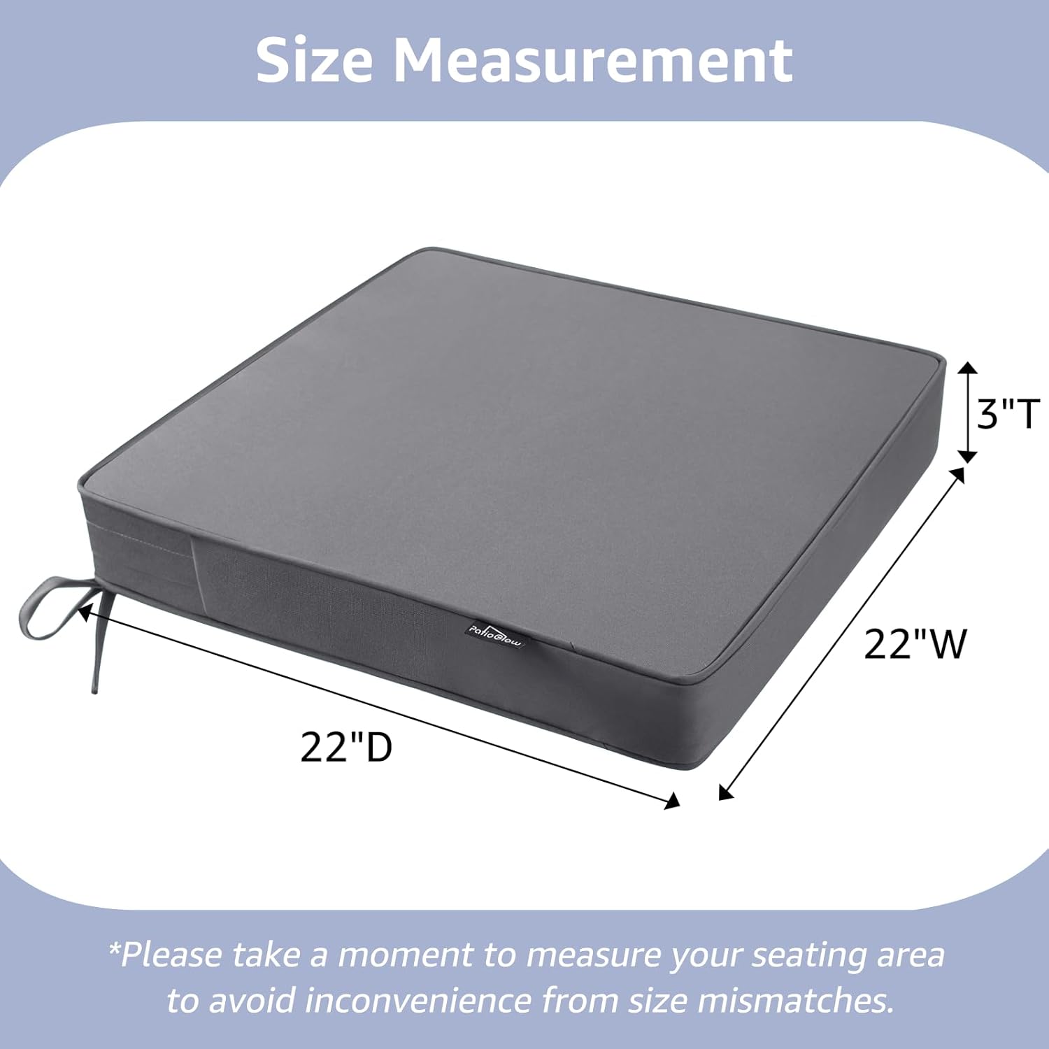 Set of 2 Outdoor Chair Cushions 22 x 22 x 3 Inch, Waterproof & Fade Resistant