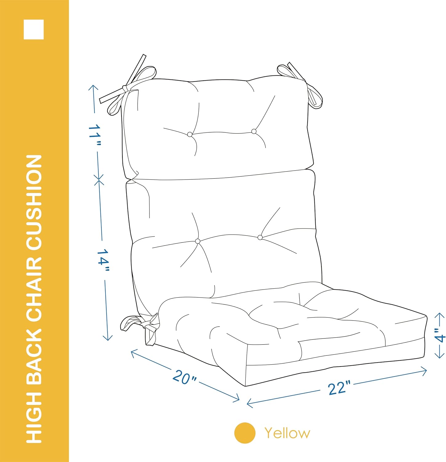 Transform your outdoor seating into a haven of comfort and style with this premium set of four high-back chair cushions. Engineered for year-round durability, these cushions feature waterproof, UV-resistant polyester fabric that withstands sun exposure, rain, and harsh weather conditions without fading or deteriorating. The tufted construction with sewn circle tack technology ensures superior comfort while preventing fill from shifting, maintaining their shape season after season. Designed with practicality in mind, secure attachment ties keep cushions firmly in place on adirondack chairs, patio rockers, dining chairs, and lounge seating—both indoors and out. The generous 45"x22"x4" dimensions provide ample support and cushioning for extended relaxation. Whether you're furnishing a deck, patio, or sunroom, these versatile cushions deliver the perfect blend of functionality and contemporary aesthetics, elevating your outdoor living space with comfort that lasts.