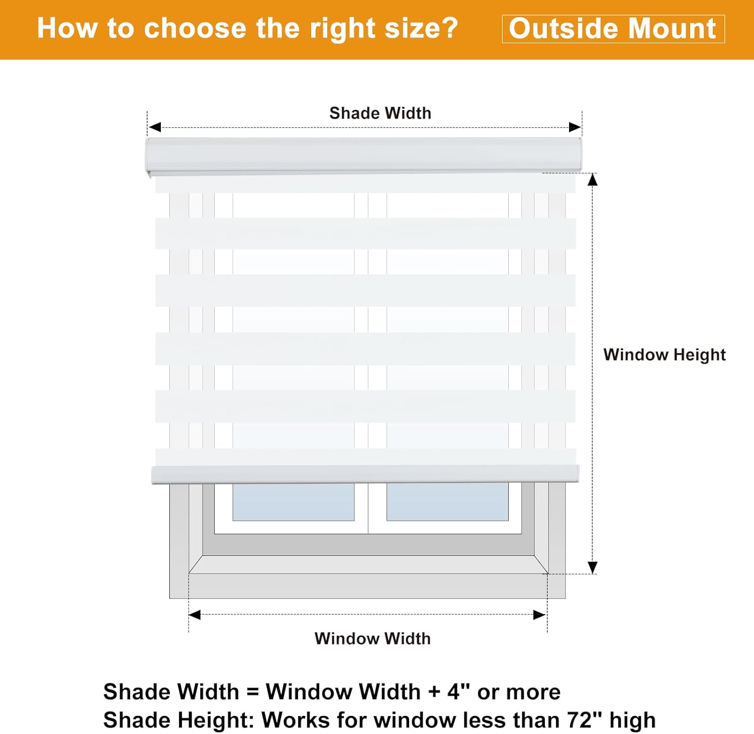 Persilux Zebra Blinds for Windows Cordless Blinds & Shades (28" W x 72" H, White)