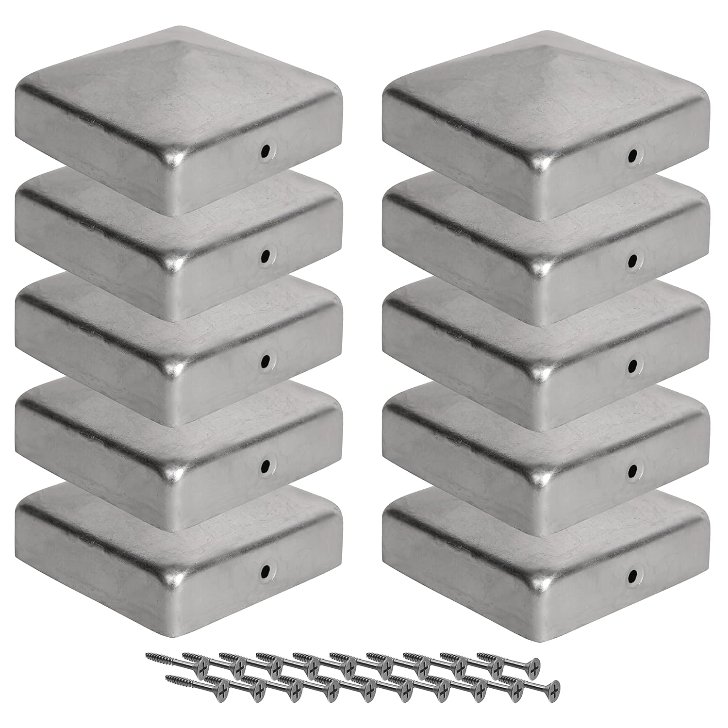 - Standardized convenient fit – fits 3.5" x 3.5" square wooden fence or deck posts and each metal cap comes with pre-drilled screw-holes with FREE 2 pcs screws per cap (total of 20 pcs for the 10 pc - set)