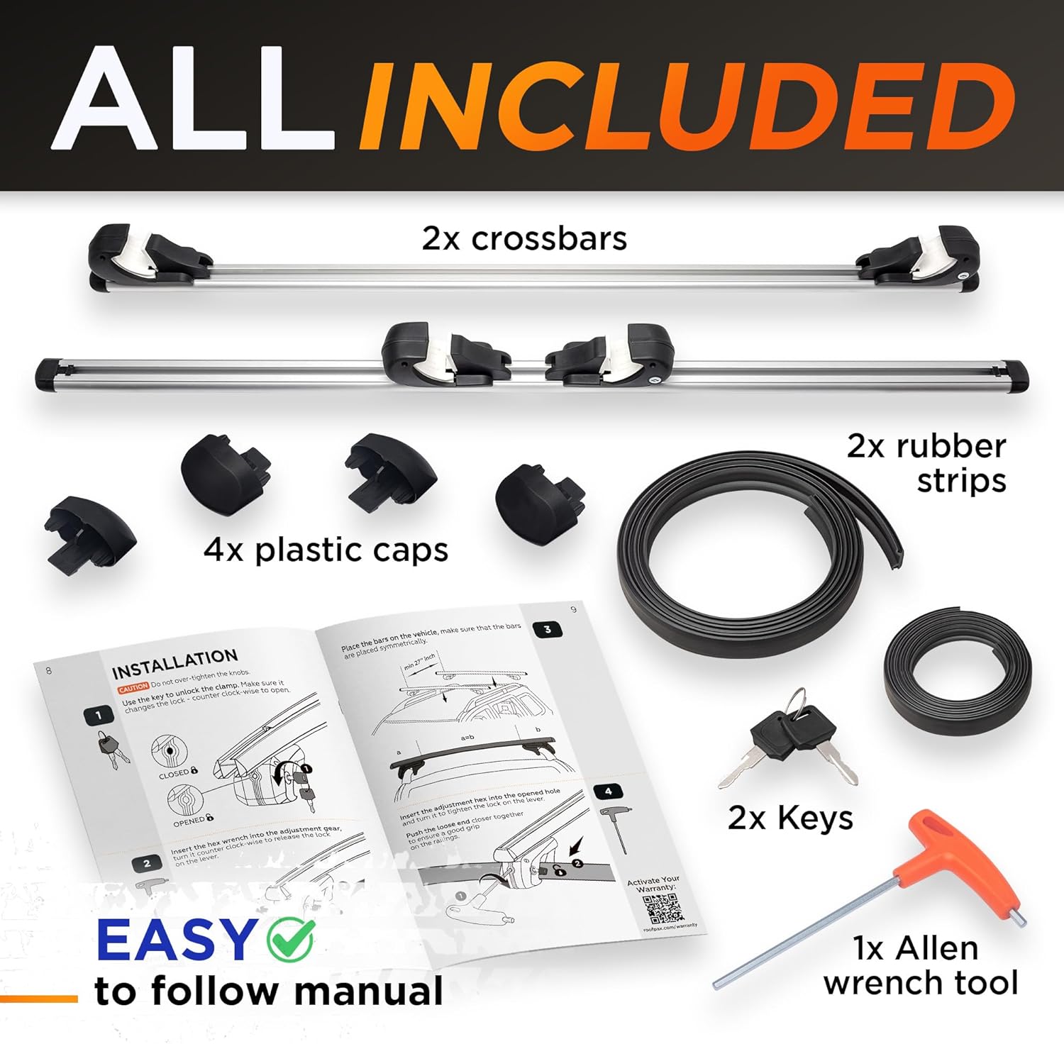 RoofPax 52" Car Roof Rack for Raised Side Rails Cross Bars Adjustable
