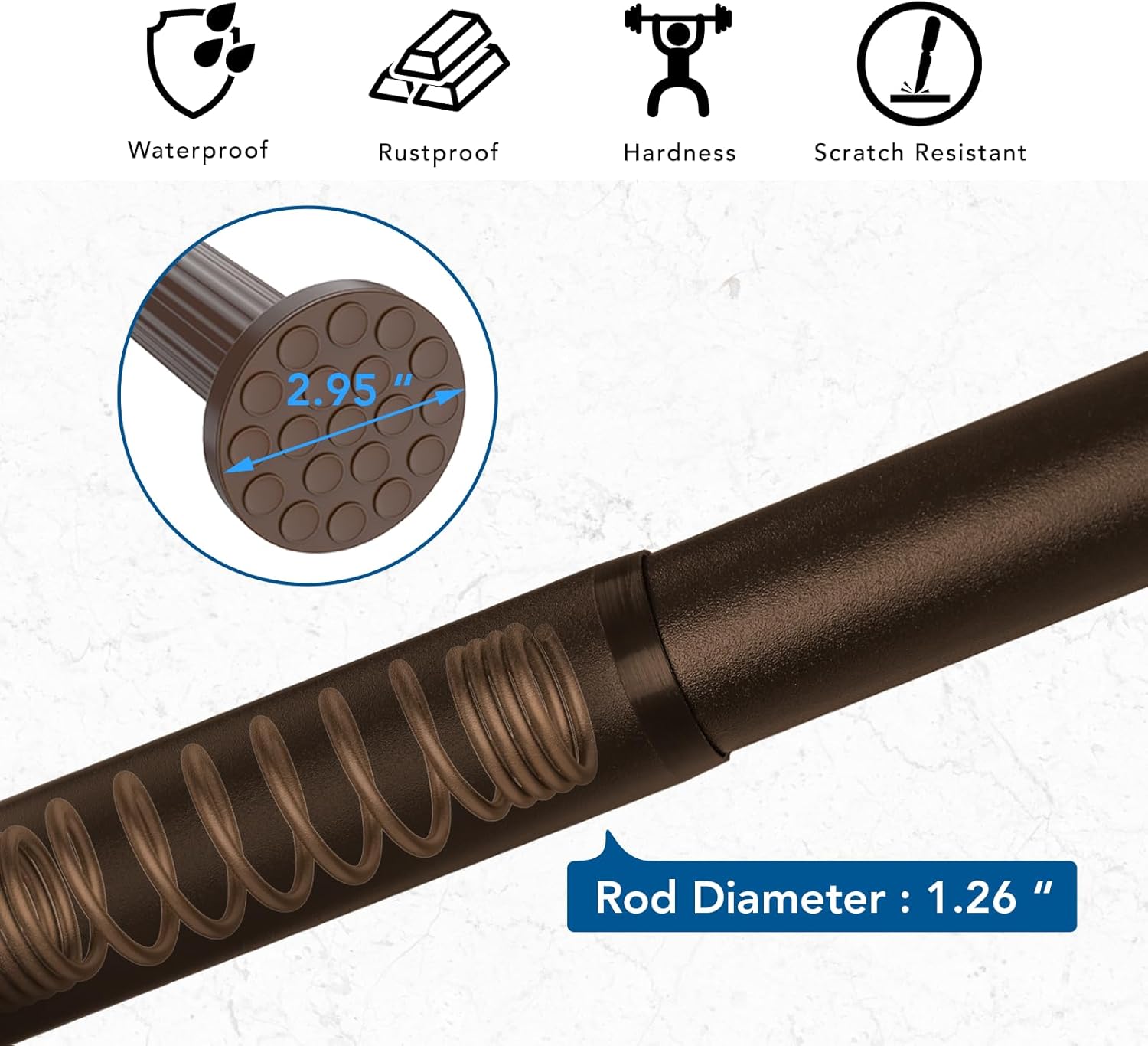 - 【Never Rust & Constant Tension】Never rust under any environment, sturdy and durable. The shower rod provides consistent tension, meaning that it always stays reliable and safe, so you don't have to worry about it slipping or falling. Max load 66 lbs.