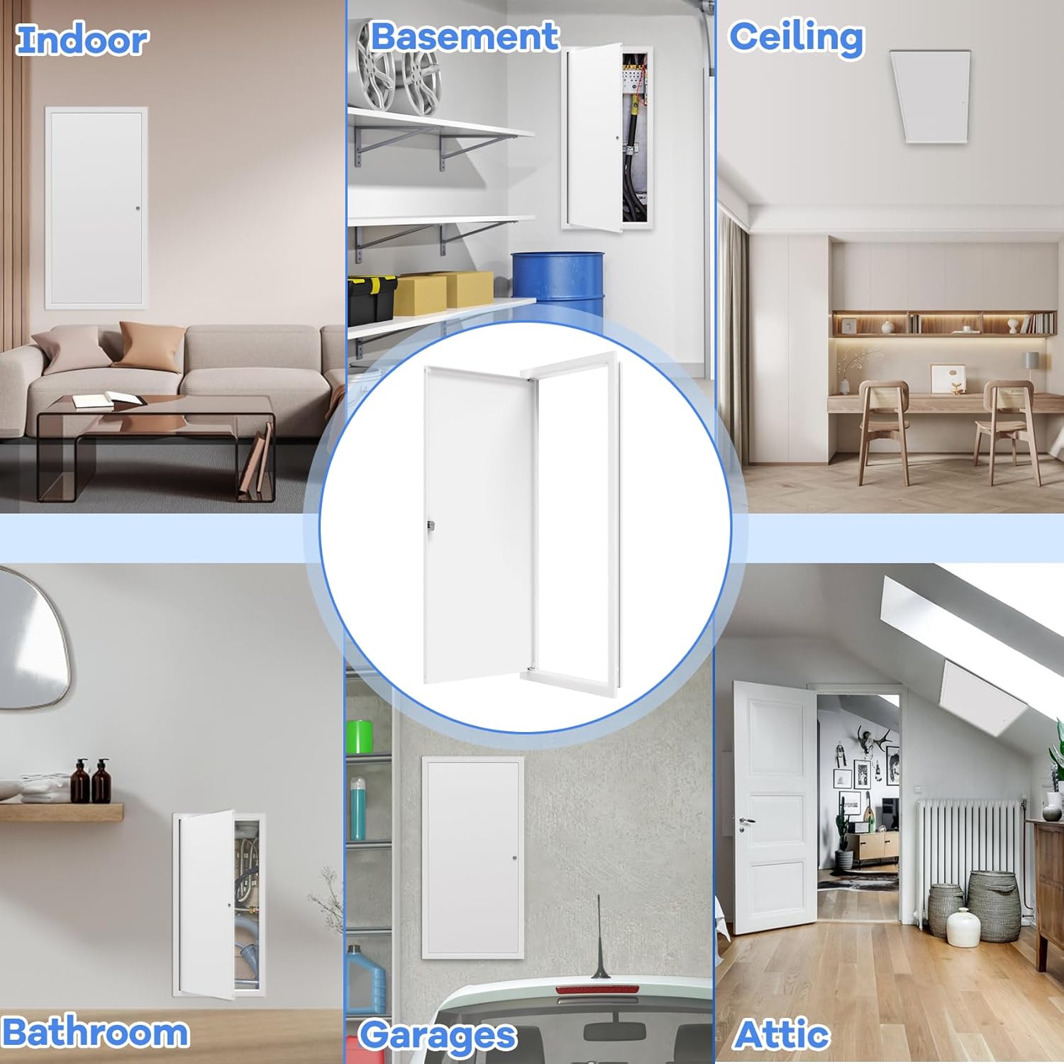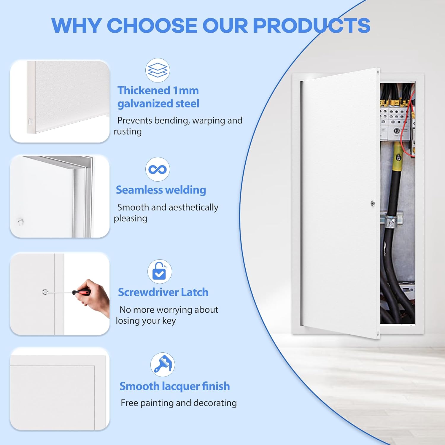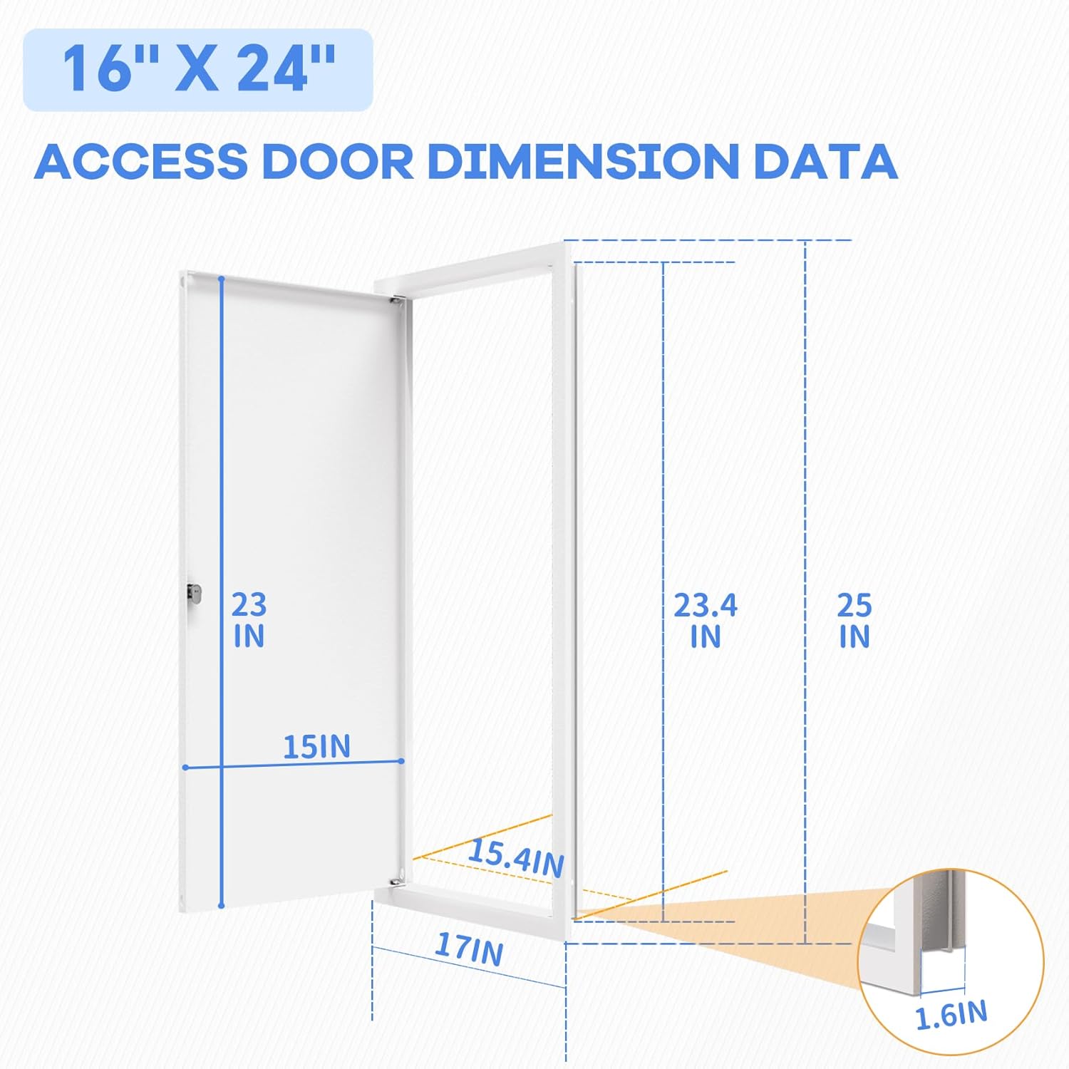 This 1mm thick 16x24 access panel for drywall fits perfectly with a frame size of 17x25 inches and a panel size of 15x23 inches, requiring a wall cutout around 15.4 by 23.4 inches. Made from rust-proof galvanized steel with smart welded seams and a sleek painted finish, it laughs in the face of rust, warping, and wear. Installation? A breeze! No fancy tools needed—just follow our handy video and you’re set in 10 minutes. Perfect for sneaky attic peeks, plumbing checks, or quick wall access anywhere you need it!