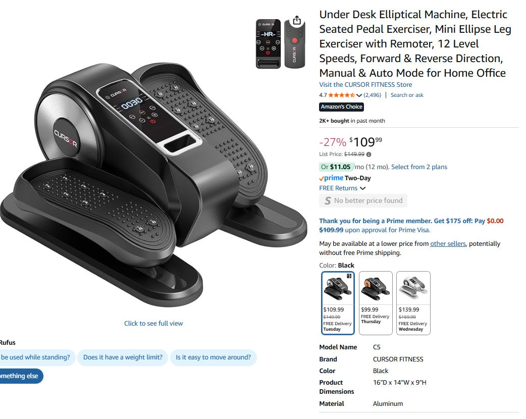 Stay active and entertained with the Under Desk Elliptical! This compact pedal exerciser lets you burn calories and boost your mood while sitting—whether you’re working, reading, or binge-watching your favorite shows. With 12 speeds and 12 modes, including HR manual and auto settings, easily tailor your workout with the remote control. Switch directions and intensities effortlessly to keep your legs moving and joints relaxed. Turn any chair into your personal gym and make every sitting moment a fun chance to move!