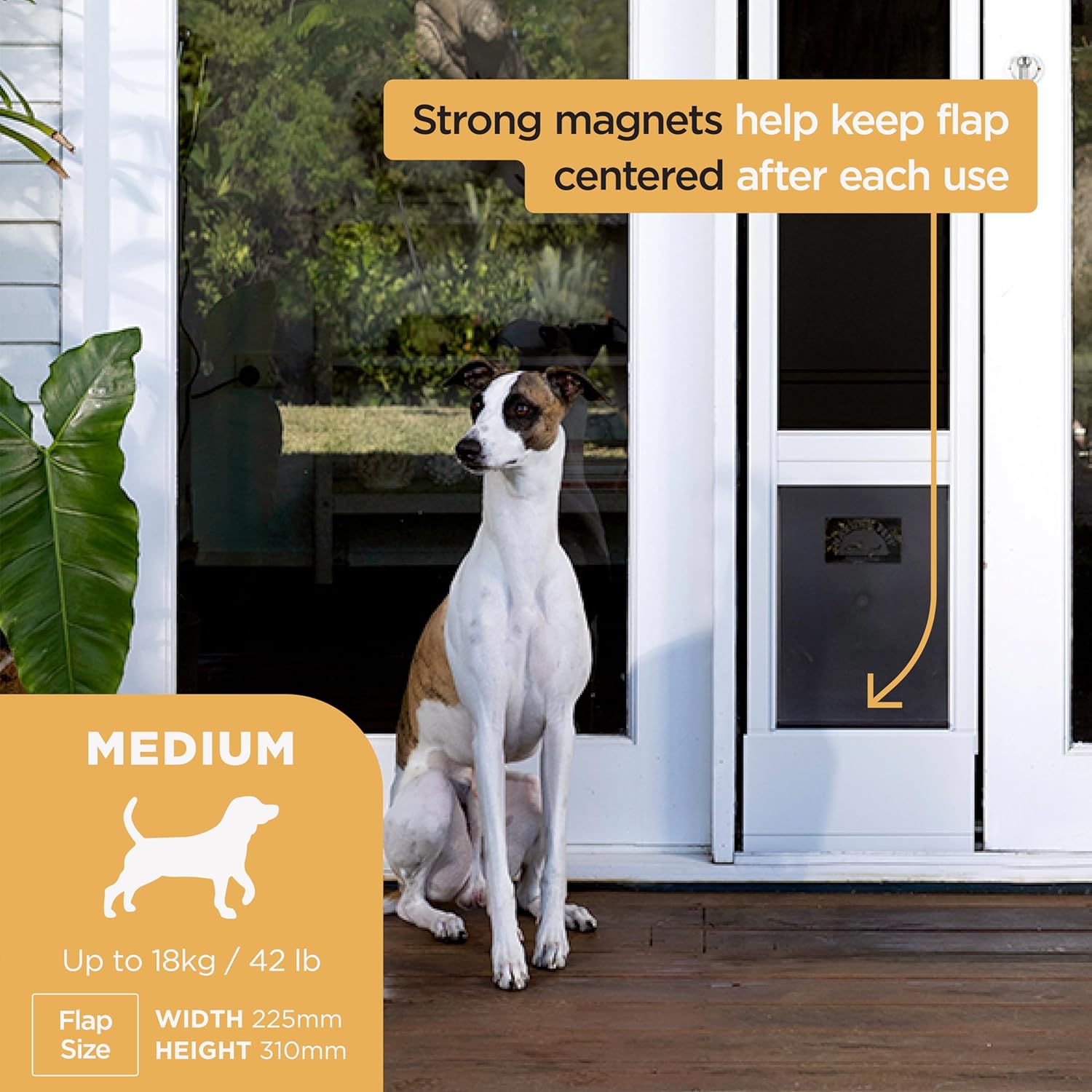 Keep bugs out and let your furry friend in with this V2 Patio Pet Door Screen Insert! Measuring 12.20” wide and up to 84.25” tall, it fits most sliding doors easily. The tough fiberglass mesh lets fresh air flow while blocking pesky insects—ideal for those sunny summer days. No tools needed—just slide it into your door track and go! Perfect for renters or anyone who wants a pet door without permanent changes. Built tough with a powder-coated aluminum frame and UV-resistant flap, it’s made to last and keep your pet happy.