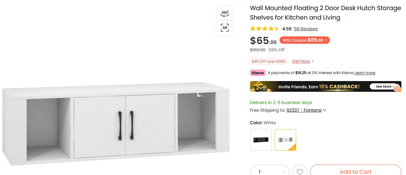 Wall Mounted Floating 2 Door Desk Hutch Storage Shelves for Kitchen and Living